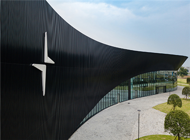 該項目位于成都天府新區,是沃爾沃汽車集團旗下全新的獨立電動高性能汽車品牌——Polestar極星在全球范圍內的專屬生產基地。這座融合了極簡設計、尖端制造技術與先鋒環保理念的“藝術工廠”,總建筑面積4.3萬方,包括主車間、辦公樓和餐廳,以及一條專業的客戶試車跑道。跑道總長約2460m,分為南北兩部分:北側及東側為高速段,南側東部為性能試驗路段。特殊路面約800米,包括比利時式路面和維也納式路面等。