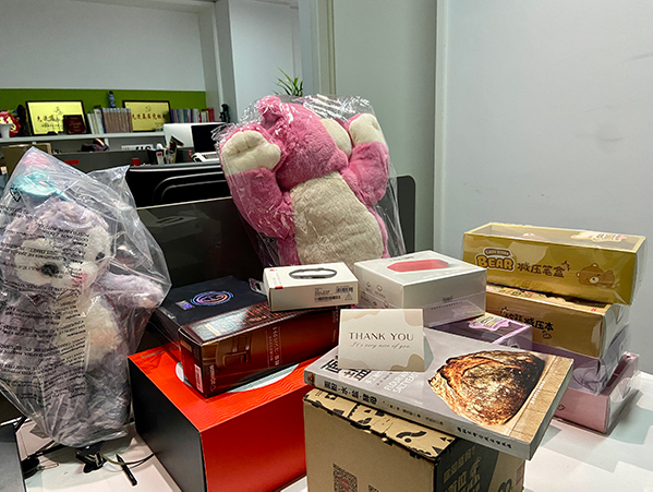 送給奶奶的保健品,送給父母、妻子的按摩儀、送給父親的剃須刀、還有給孩子們的文具、書籍、籃球……愛心物品陸陸續(xù)續(xù)從同事們手中送來,又很快踏上了前往工人們家中的道路。